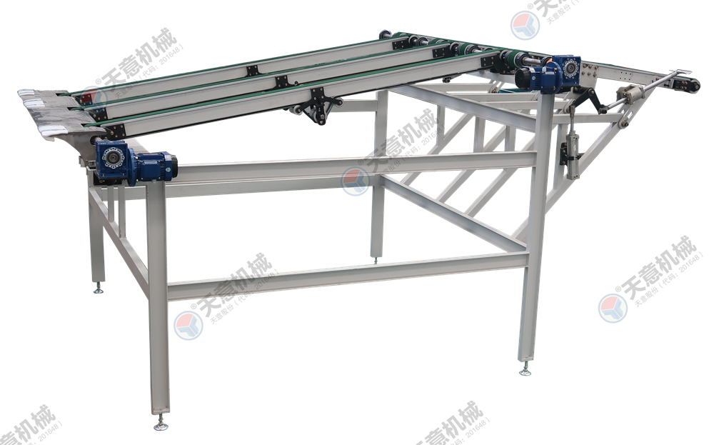 適用于背涂膠后硅酸鈣板、水泥纖維板、玻鎂板等進(jìn)行流水作業(yè)時的工件對中輸送。采用尼龍輪輸送,既能減少與膠面的接觸面積還能保證板材的平穩(wěn)輸送。具有將板材對中的作用,提高了生產(chǎn)線的工作效率。...