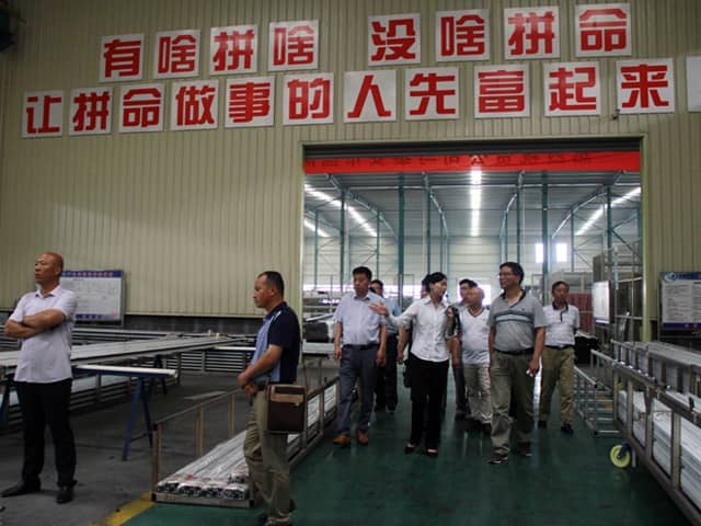 緊接著,參觀了天意樣板別墅、集成房屋、設(shè)備生產(chǎn)車間、鋁型材加工基地。專家領(lǐng)導(dǎo)團(tuán)對我公司擁有的先進(jìn)助力建筑垃圾廢棄物資源化利用的擠壓墻板生產(chǎn)線給予了高度評價。